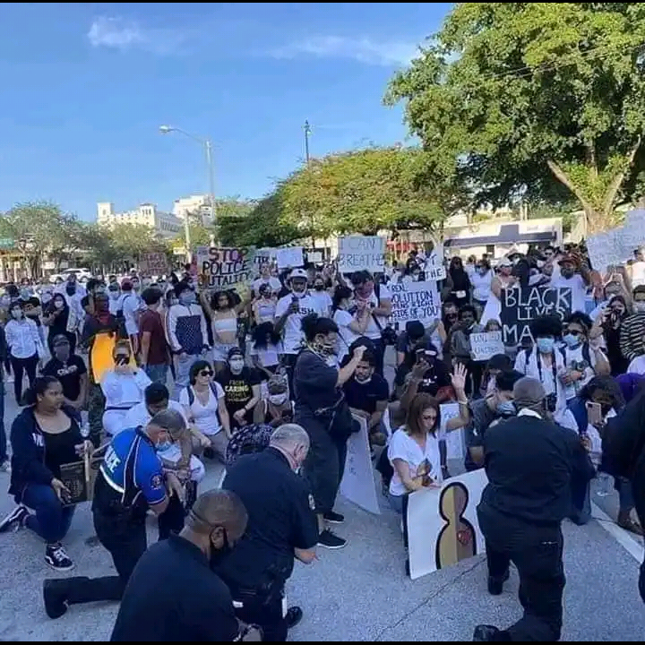 The world has been reacting since the death of Floyd and many Celebrities has taken to the streets to lead peaceful protests which totally spells doom for George killer. People are also calling for more level of justice because they see the third degree murder he was charged with as a merciful act. Recently, the Miami police department knelt down before protesters to apologize for the death of George Floyd. The whole exercise ended in an emotional way as the protesters and the police officers wept together.